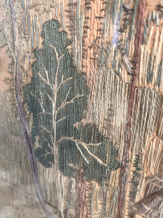 ON HOLD Pair of Early 20th Century Chinoiserie Silk Embroidered Linen Panels. Signed & Dated