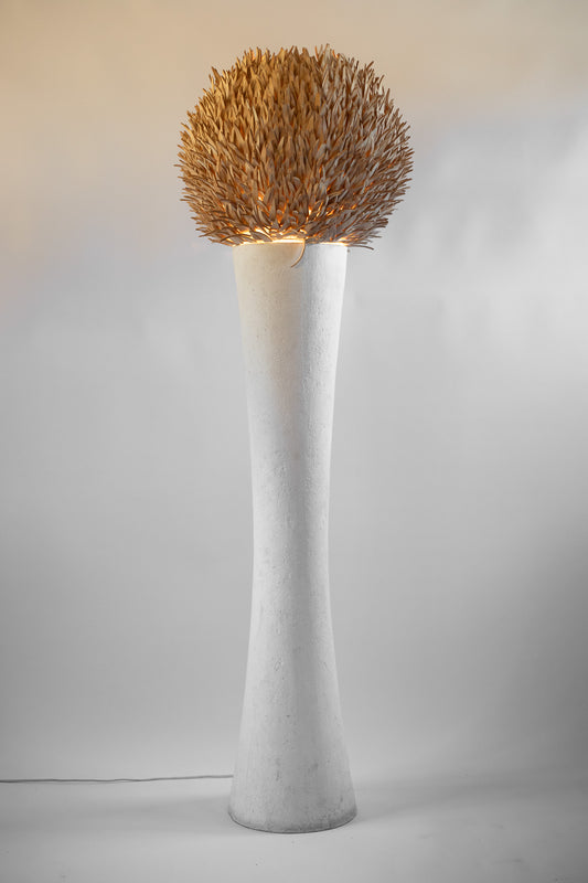 Vintage Plaster Floor Lamp With Coconut Shade