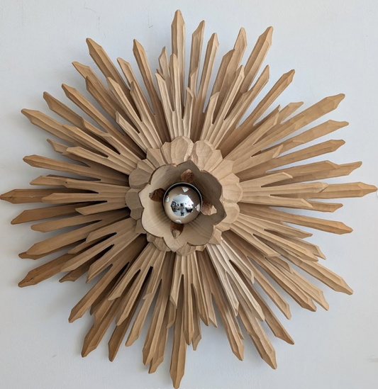 Large Carved Sunburst Wall/Ceiling Lights (Pair). C 1970