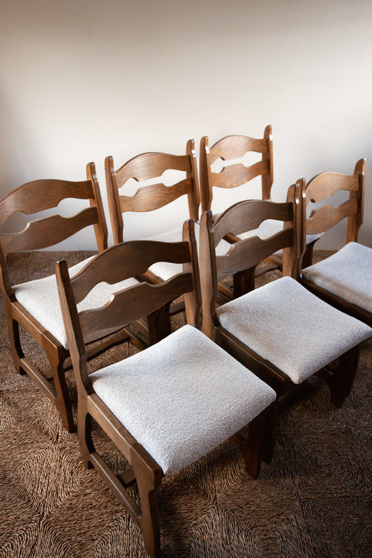 Set of Six Mid-Century French Oak “Razor Back” Dining Chairs