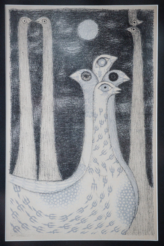 MAX WALTER SVANBERG. Composition with birds, lithograph.