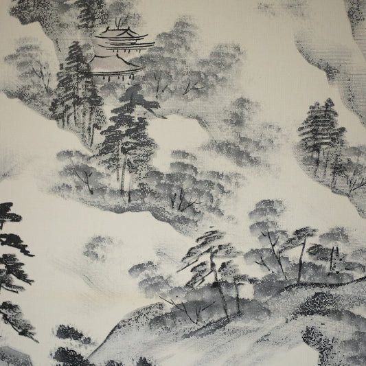Decorative Japanese Six-Panel Folding Screen. Mountainous Scenes.