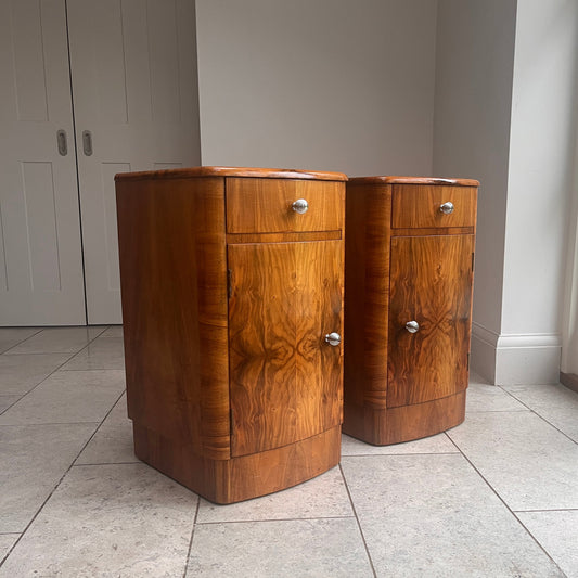 Pair of Art Deco Burr Walnut Bedside Cabinet c. 1930–1940