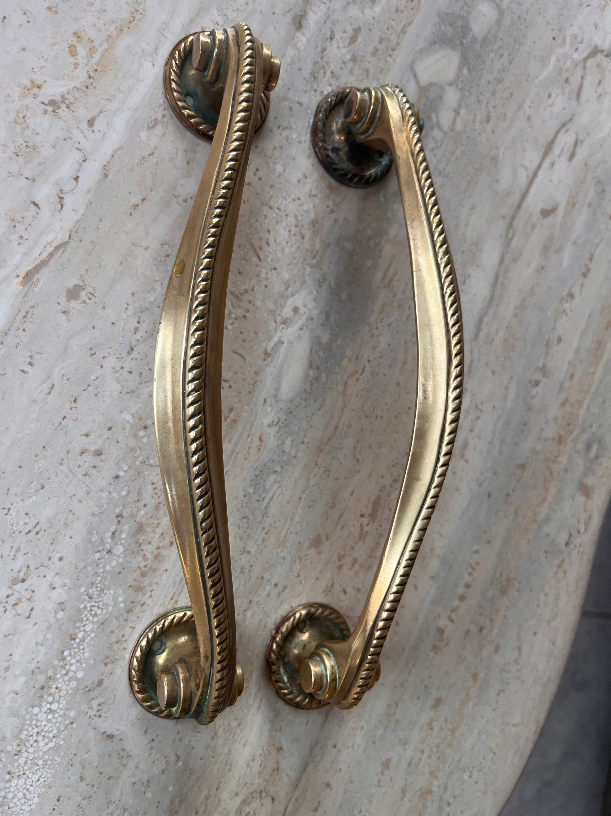 Beautifully crafted early 20th century solid brass door handles with rope detail.