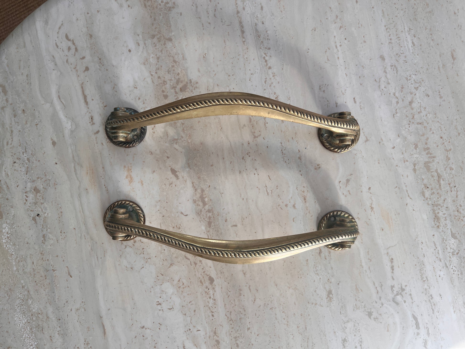 Antique Brass Door Handles with Rope Detail - Early 20th Century Pair
