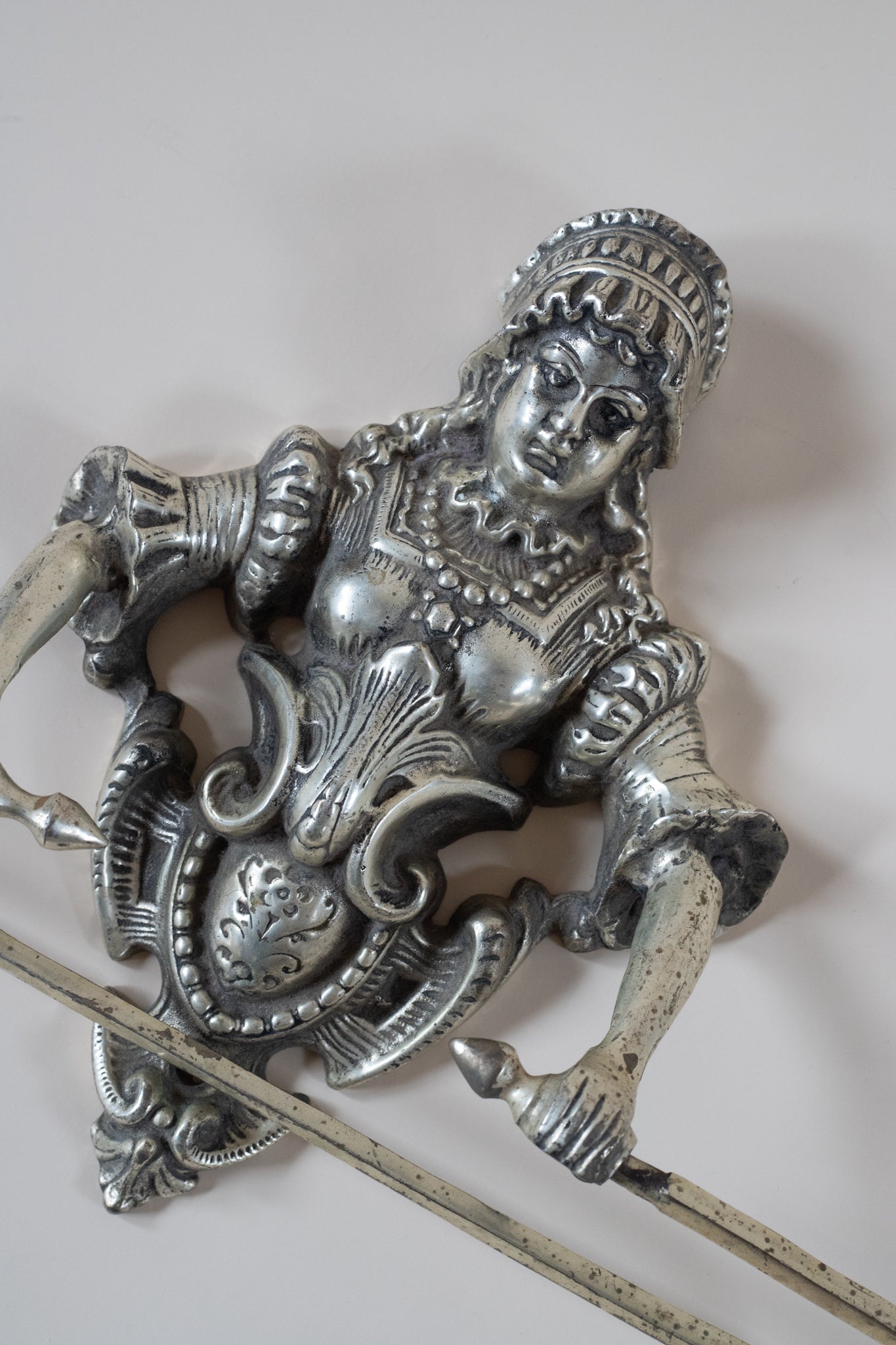 An Art Nouveau cast metal towel rail, circa 1910, of Italian origin. Cast metal with silvered finish that has developed a patina over time.