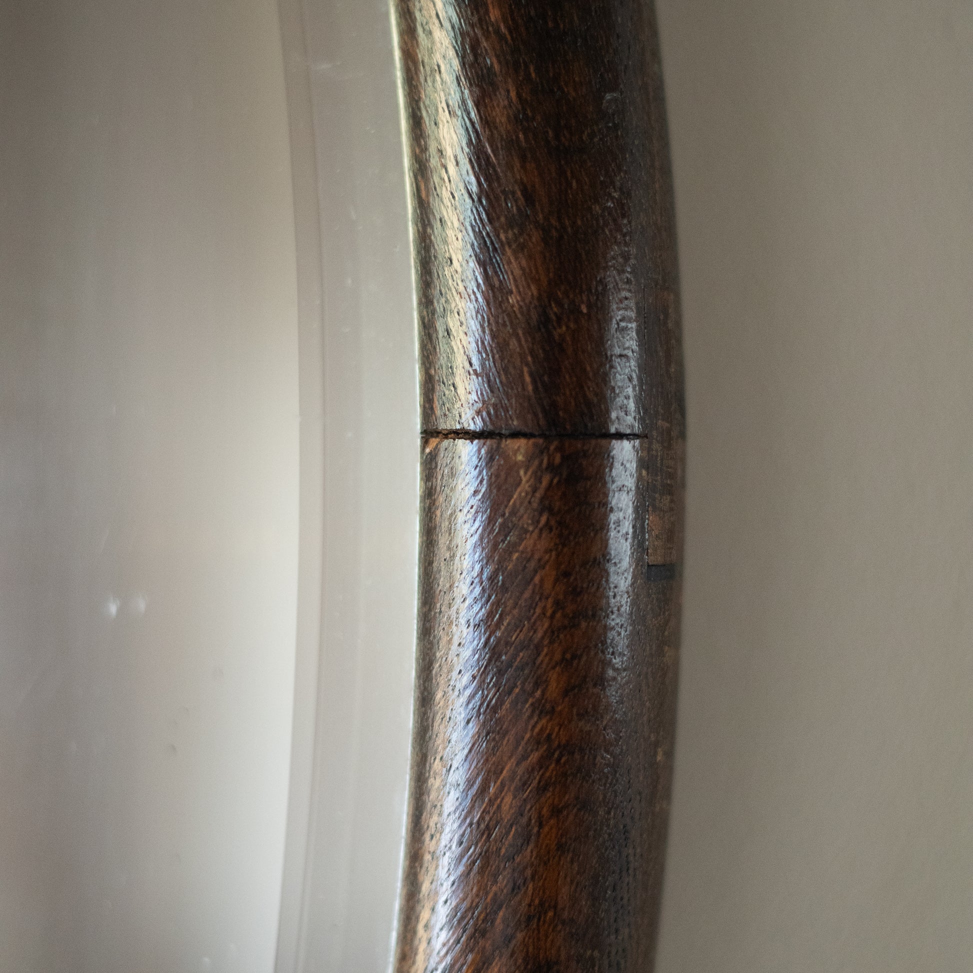 The frames are simply turned in solid oak and constructed in sections, with visible joints to the reverse and edges, consistent with traditional workshop methods. The glass plates are bevelled and sit neatly within the frames.