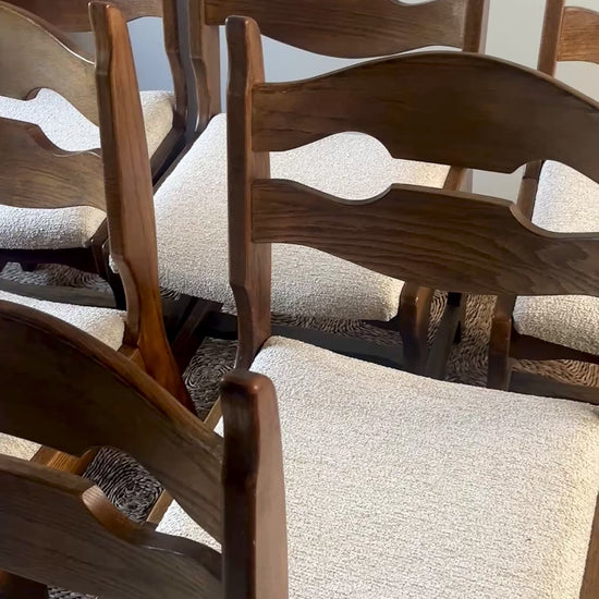 Set of Six Mid-Century French Oak “Razor Back” Dining Chairs