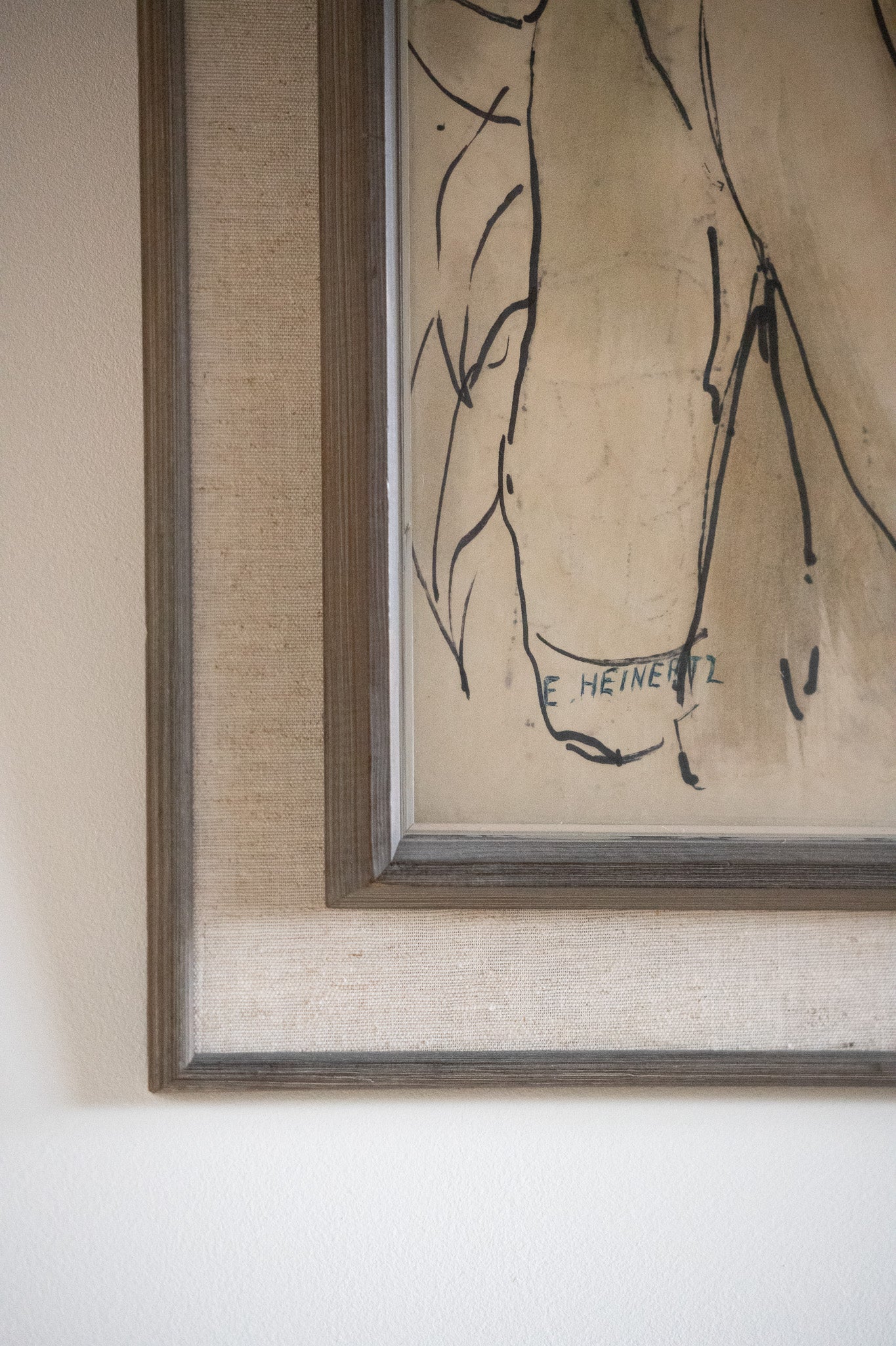 Heinerttz’s style aligns with contemporary explorations in European post-war art, where emotional clarity, economy of line, and compositional poise merge to form compelling visual narratives. Signed pieces like this are particularly collectible due to their rarity in the artist’s known oeuvre.